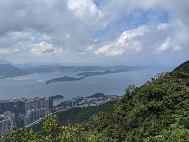 一直走至一大石後方為黃金壁脊入口. 黃金壁脊有很多分叉口, 可以找到廢棄礦洞. 分叉口選向上走的, 一直上升也有攀爬位. 至出口附近左邊有一非常直的下降位. 需背向小心下降, 但還好粗樹及腳位也足夠. 下降至陰暗林下. 腳下斜斜的泥坡非常濕潤. 穿過斜坡直走再上升就到達折雁台. 折雁台為一相對水平的大石, 就像山中的一平台, 可看到吐露港全景. 折雁台後方攀升至吊手岩有攀爬一難度, 過後就很輕鬆了.